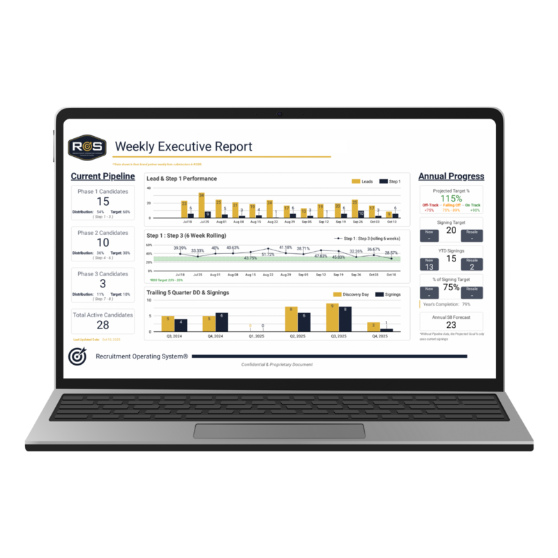 Your CRM captures leads. The ROS Reporting Program™ makes franchise recruitment measurable, predictable, and scalable with a clear view of your pipeline and the steps to improve it.
